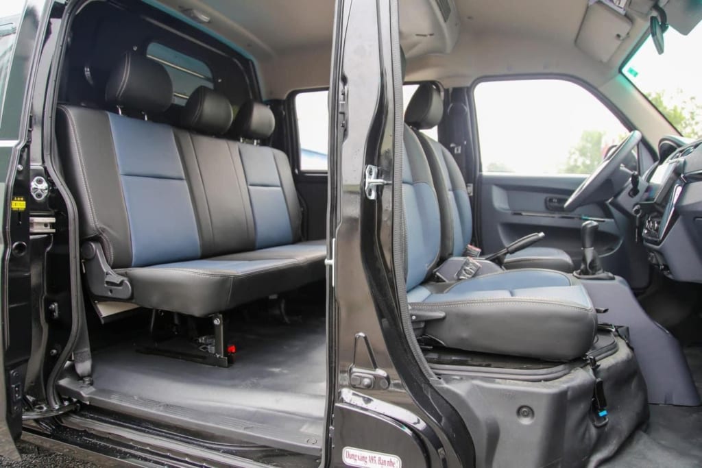 Hàng ghế sau được thiết kế liền, có thể gập lên xuống, tạo thành 1 khoang chở hàng khi cần thiết. Phía sau khi quý khách nhận xe sẽ được nhà máy tặng thêm 1 vách ngăn kim loại. Ngăn khoang chở hàng và khoang hàng khách. Tạo cảm giác như ngồi trong 1 chiếc xe du lịch.