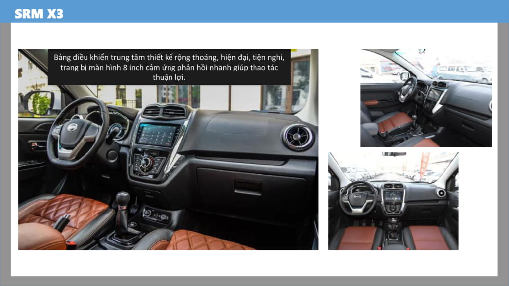 Nội thất XE SWM X3 7 CHỖ trang bị bảng điều khiển trung tâm lớn, hiện đại, tiện nghi. Màn hình 8 inch cảm ứng. Các nút bấm được thiết kế hợp lý, dễ sử dụng.