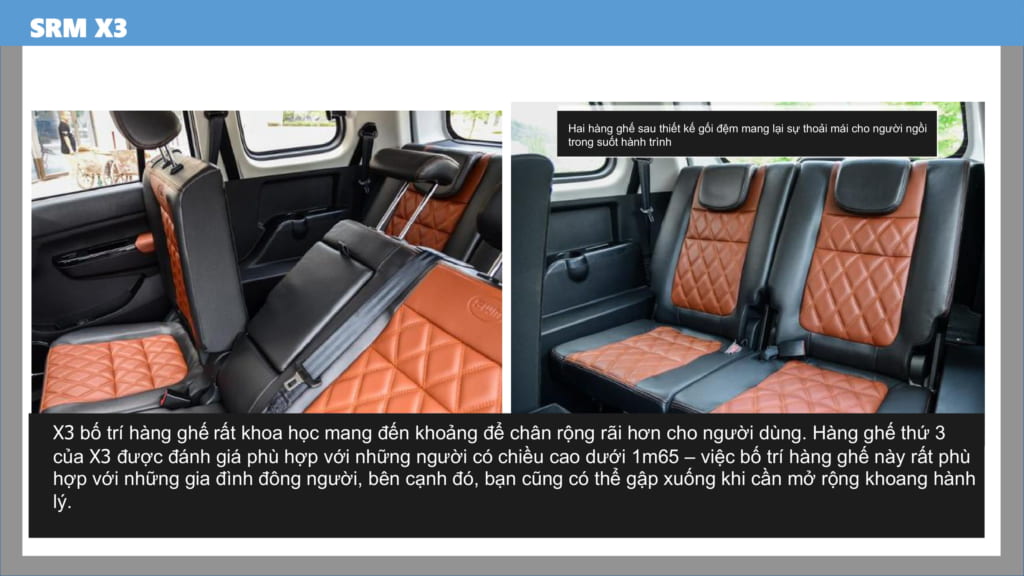 XE SWM X3 7 CHỖ bố trí hàng ghế rất khoa học mang đến khoảng để chân rộng rãi. Đặc biệt là hàng ghế thứ 3 phù hợp với những người có chiều cao dưới 1.65m, gia đình đông người có trẻ em. Hàng ghế thứ 3 cũng có thể được gập lại tạo thành khoang hành lý.