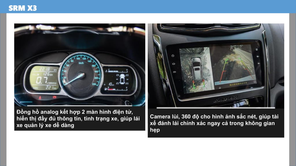 Đồng hồ XE SWM X3 7 CHỖ có 2 màn hình điện tử. Hiển thị đầy đủ các thông số của xe theo kiểu mới, nhìn rất hiện đại. Camera lùi, 360 độ cho hình ảnh sắc nét, hiển thị đầy đủ các vật cản xung quanh.